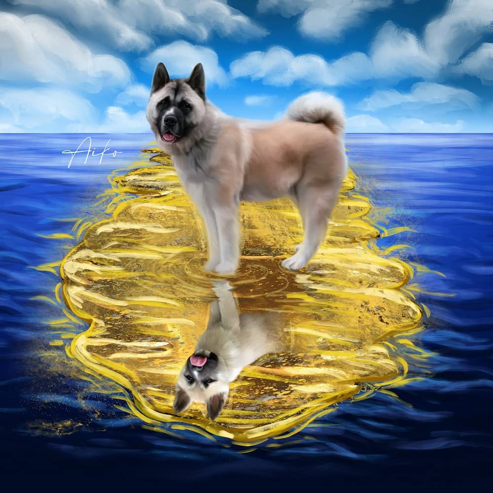 Unser Double-Stil präsentiert dein Haustier in jungen und erwachsenen Phasen, reflektiert in einer Wasser-Spiegelung. Handgemalt und individuell anpassbar – von Sonnenuntergängen bis blauen Himmeln – wird es zum einzigartigen Andenken.
